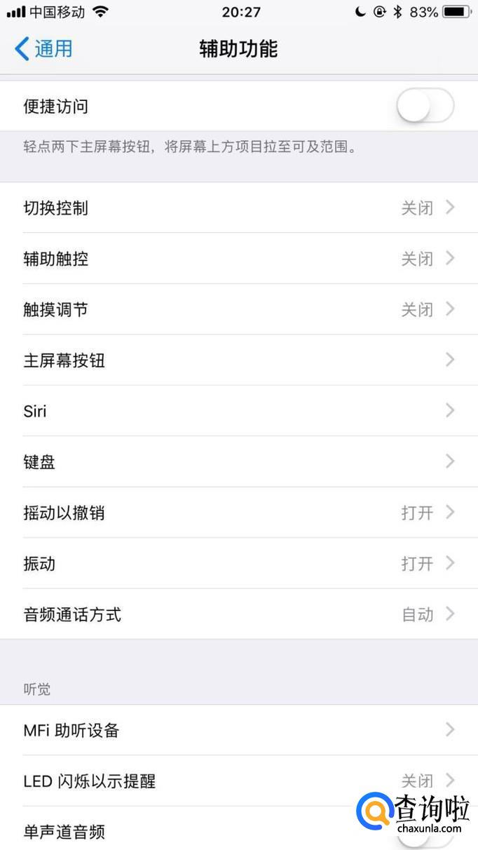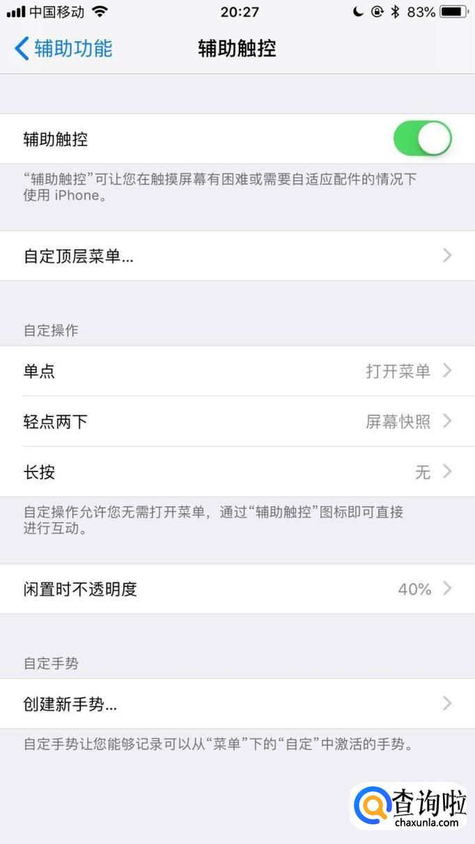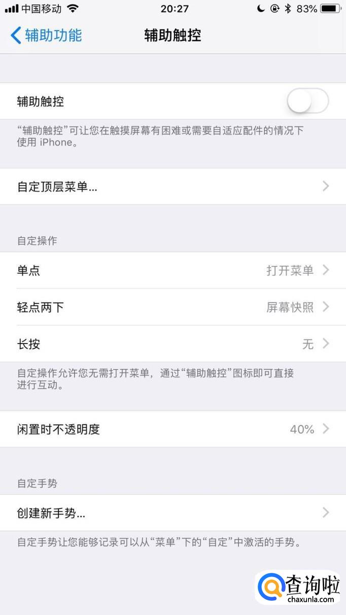 如果你想要关闭桌面上的小圆点,只要关闭辅助触控开关就可以了。