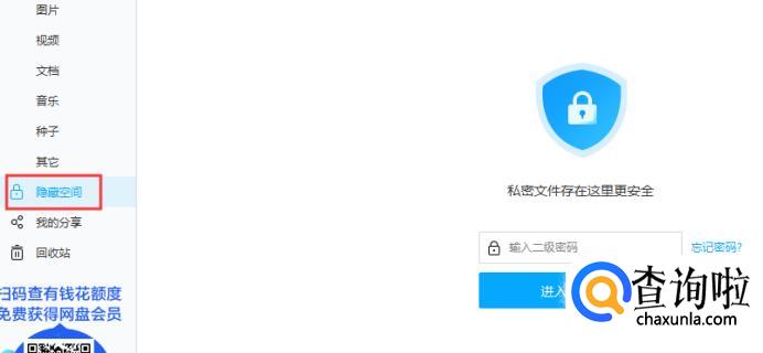 也可以直接点击左边的隐藏空间,也是需要输入二级密码才能访问。