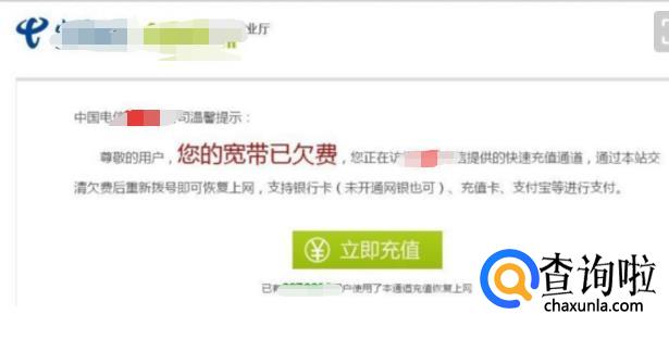 第二种可能:宽带欠费了,首先查询有没有欠费,如果欠费,需要先进行缴费。