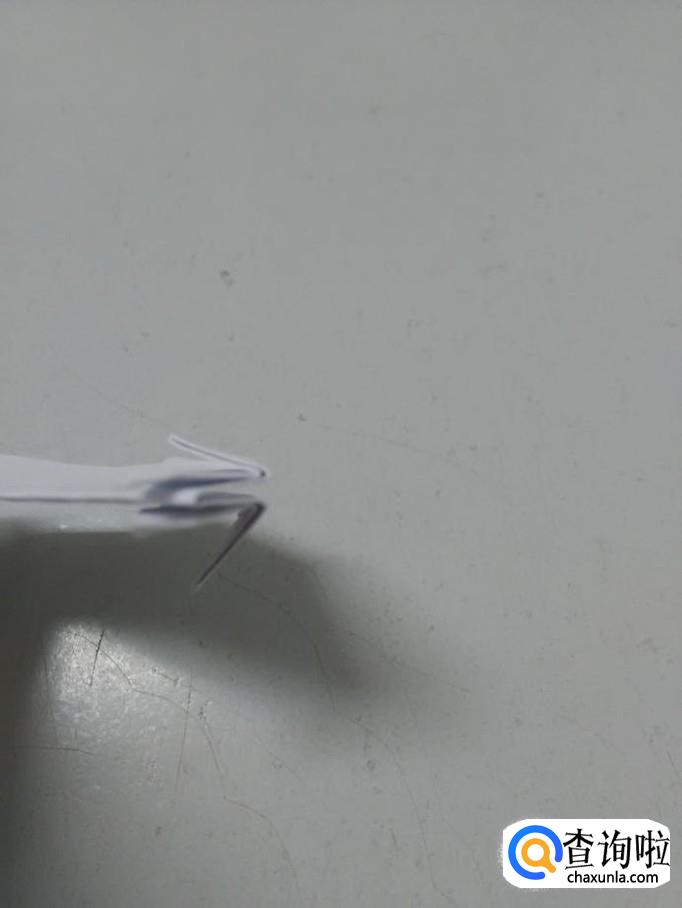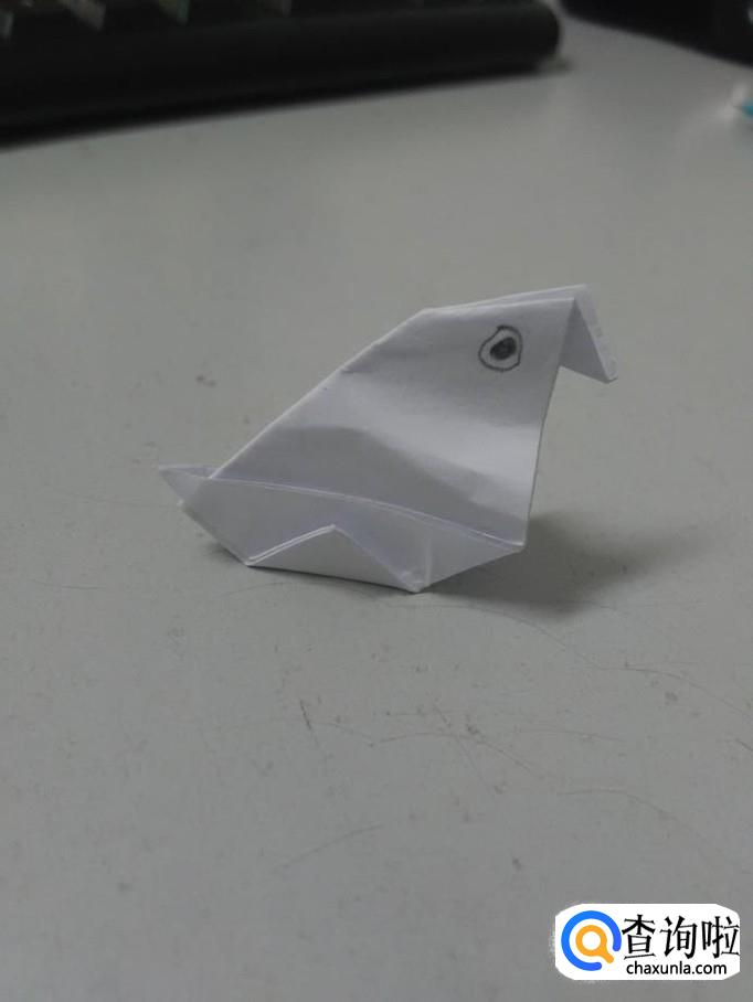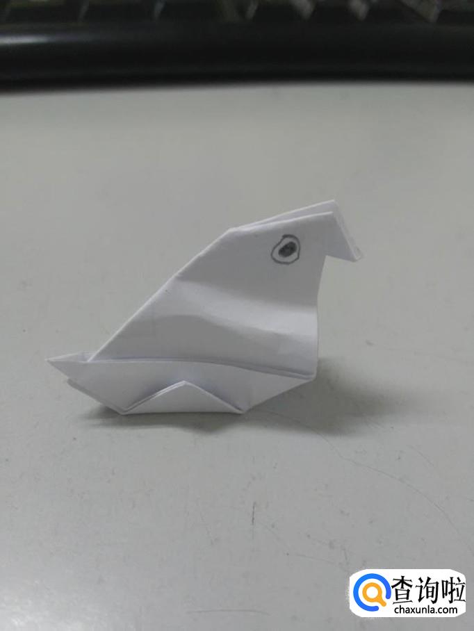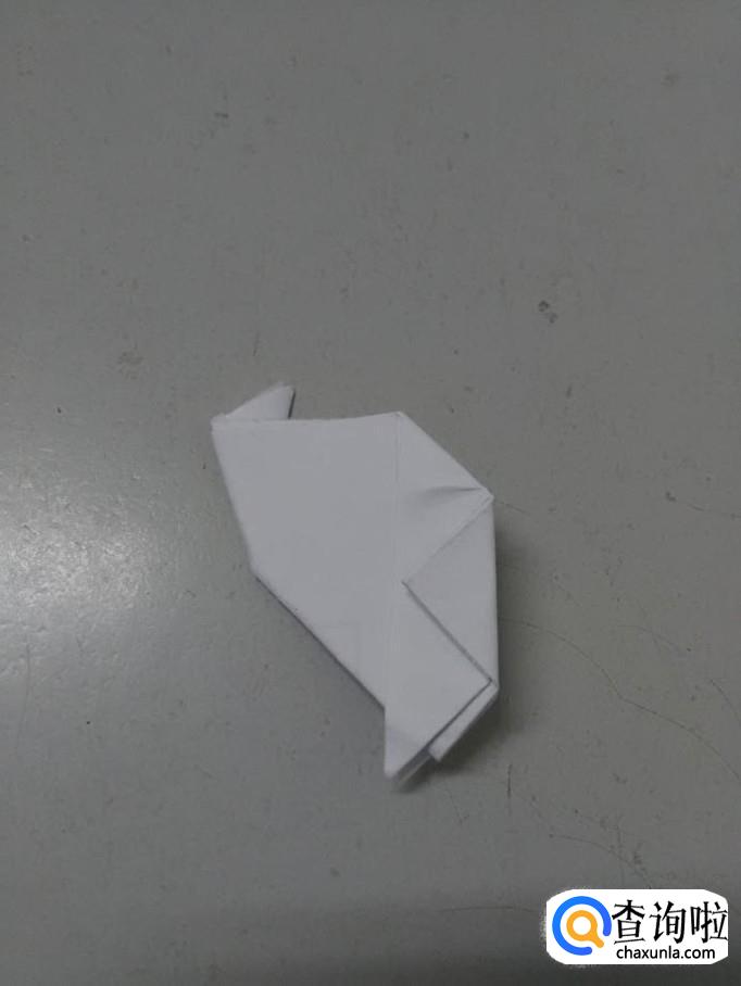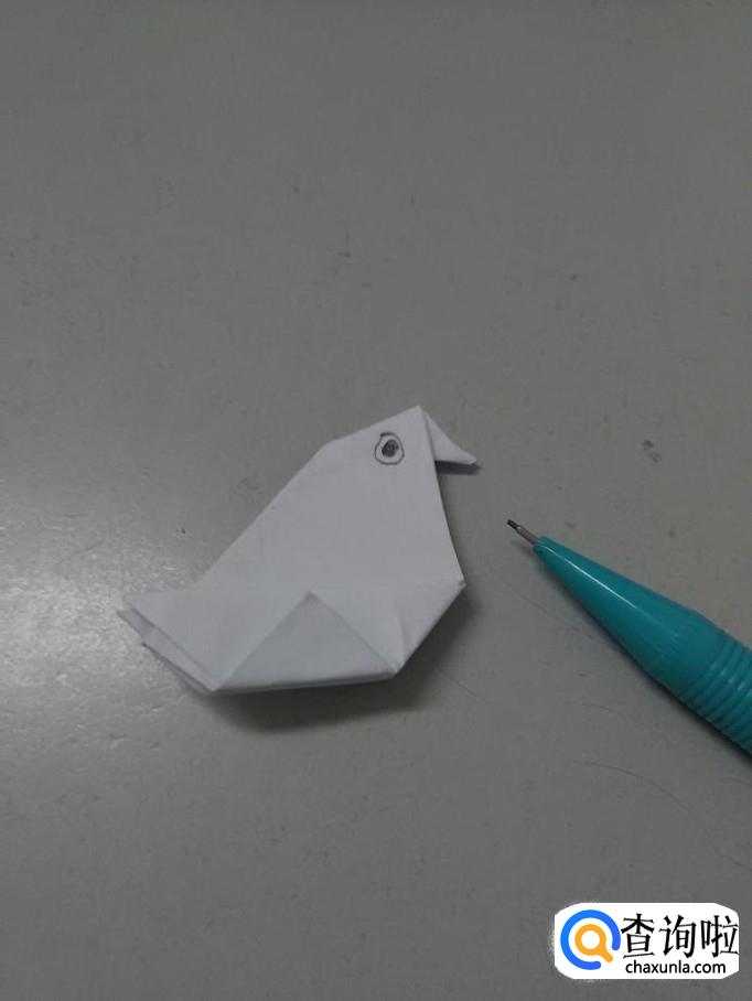 把左边的角向后折下一小段,露出的部分是小鸡的嘴。
