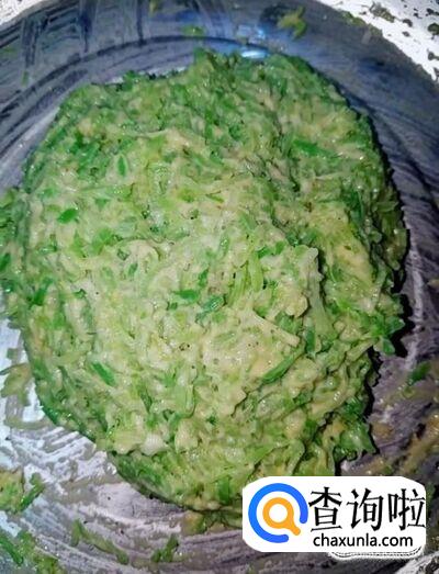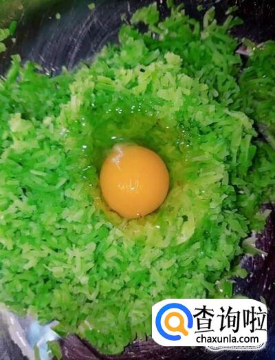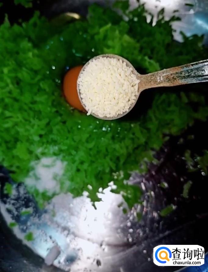 然后我们打入一个鸡蛋,放入适量的盐,鸡精,五香粉,适量的白面,淀粉,搅拌均匀