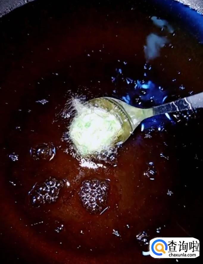 接着我们起锅烧油,油温五成热,下入丸子,炸至外表发黄捞出控油