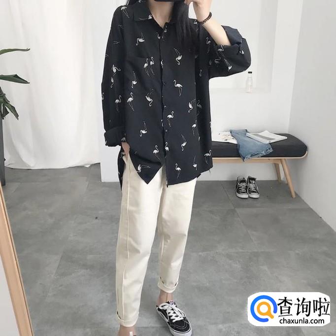 黑色的衬衣很显瘦,这件也不例外,宽宽松松的,也可以配短裤或牛仔裤穿