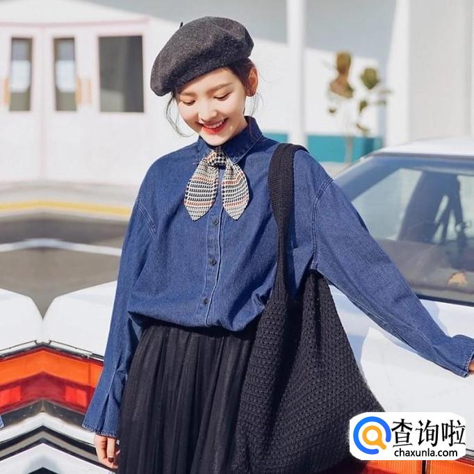 好看的牛仔衬衣并不多见,这件是纯色的牛仔衬衣,搭配一条可爱的领结也是一个不错的选择