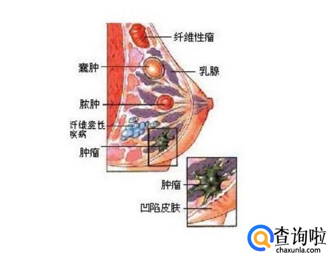 乳腺癌的引起的肿块会导致皮肤隆起,局部皮肤呈橘皮样。严重的还会出现各种病变,比如乳房水肿、变色、湿疹样改等等,反正与正常乳房完全不同,可见明显的不同。