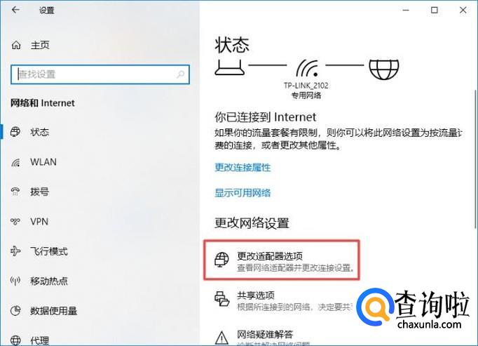 然后我们点击更改适配器选项;