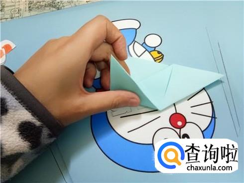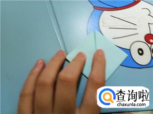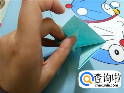 紧接着,再把折过来的部分与向下折时的中轴线多出来的部分折到里面。