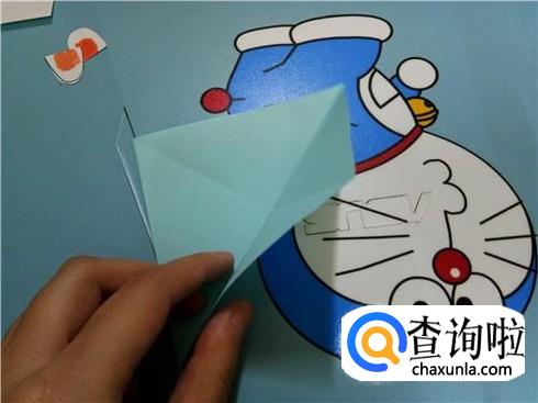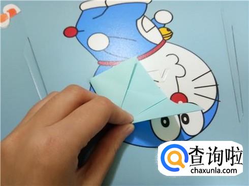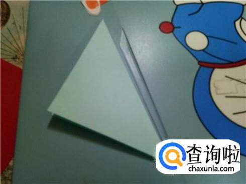 再随便沿着其中任意一条对角线折回去,成一个三角形的形状。