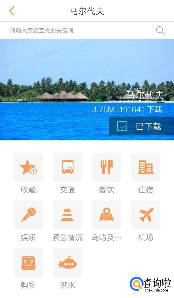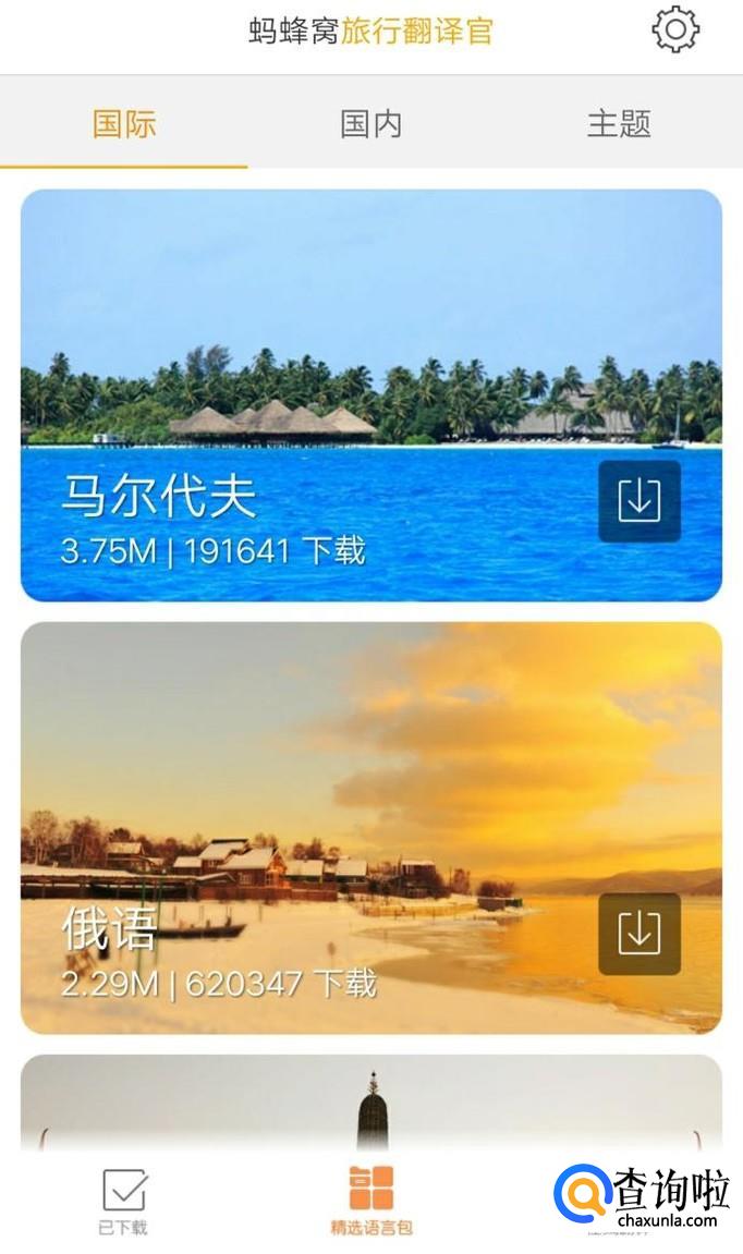 打开旅行翻译官app,进入后便能看到多种语言的语音包,以马尔代夫为例,可以选择自己想要下载的语音包。