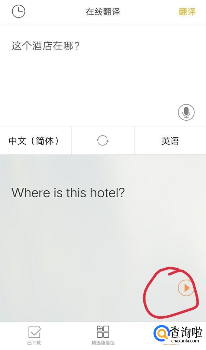 对方回答问题前,将翻译中的中文翻译为英文,转化为英文翻译成中文,点击画圈处的麦克风,对方说完后,点翻译,便能明白对方说的是什么。其他语言也是如此。