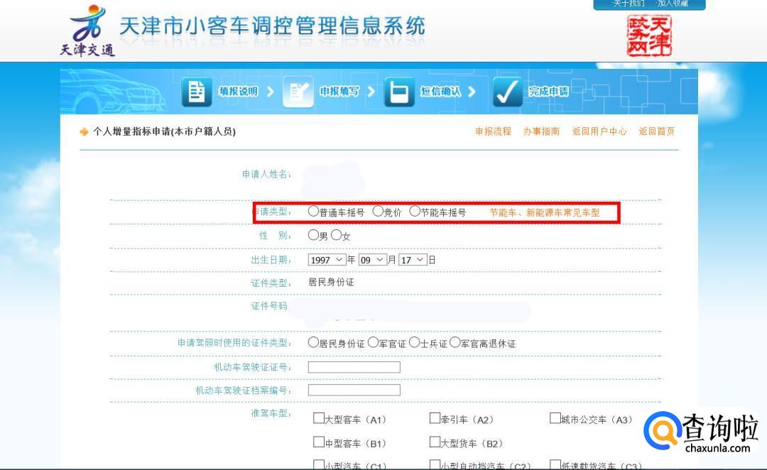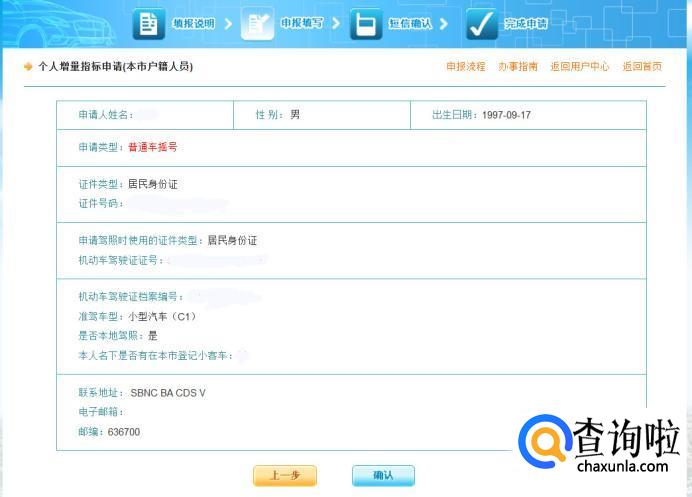 填写个人真实信息,摇号和竞价,只能选择一项,不能同时参加摇号和竞价。申请信息确认无误后,再次点击下一步。