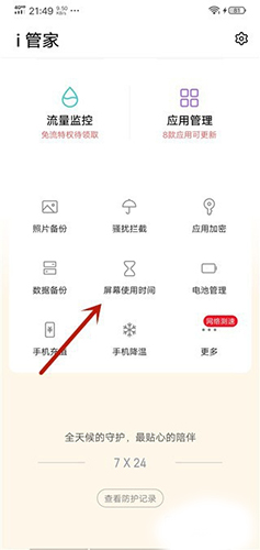 打开vivo手机——i管家——滑动界面到最底——屏幕使用时间——近7天——可以看到7天vivo手机屏幕的使用时间情况。