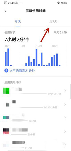 4、然后可以看到当天的屏幕时间时长情况,数据非常的详细。再点击【近7天】选项。