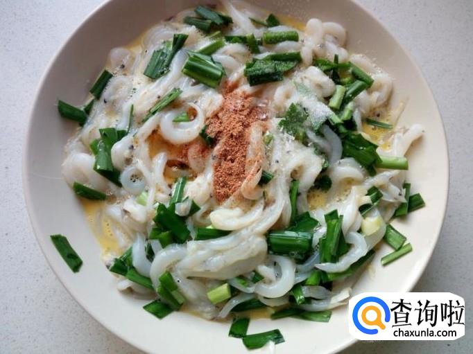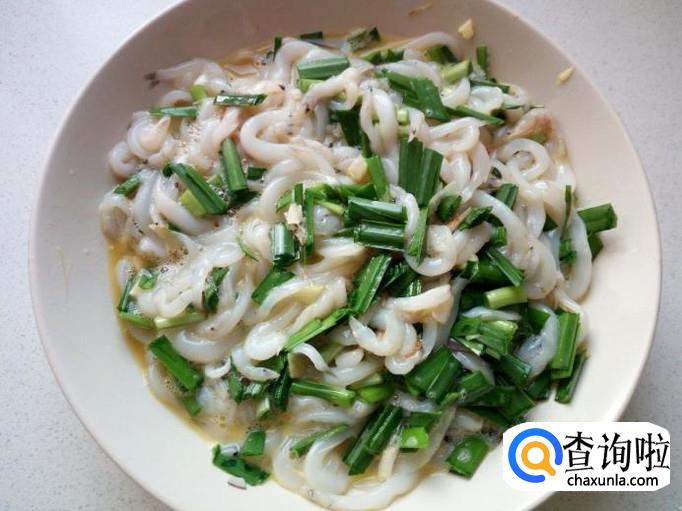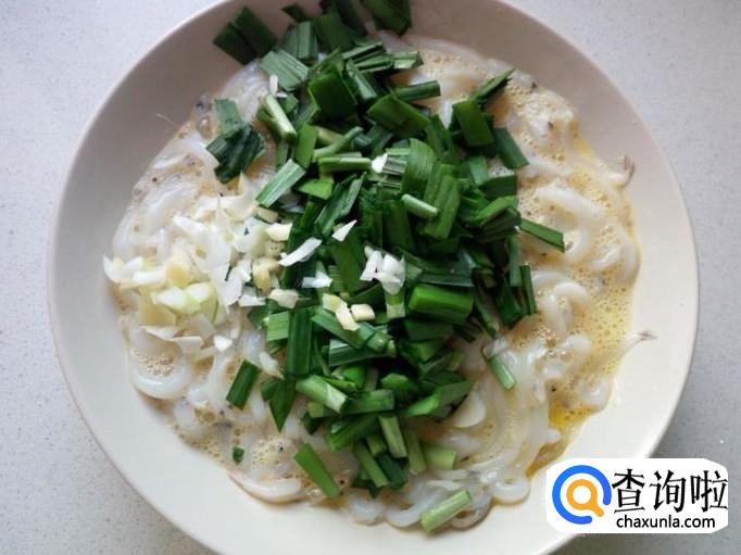 韭菜收拾清洗干净,控干水分,切成末,备用。