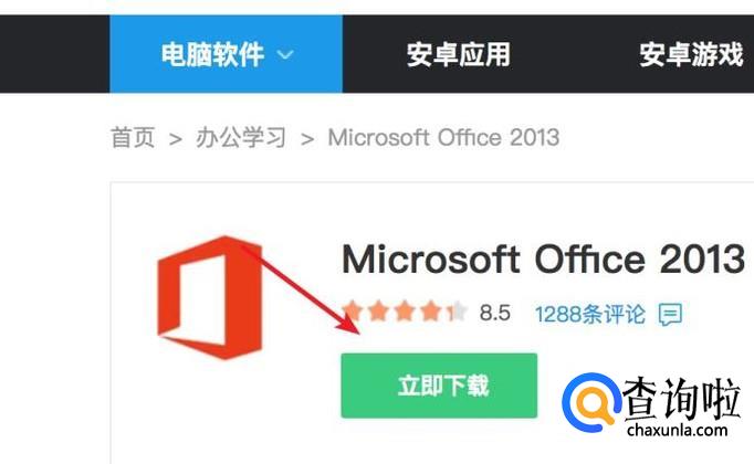 点击后就打开了搜狗下载这个网站,点击Microsoft Office 2013软件下的‘立即下载’按钮。