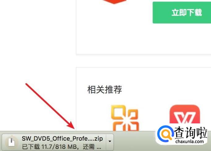 点击后,浏览器就会开始下载这个Office软件套装了。