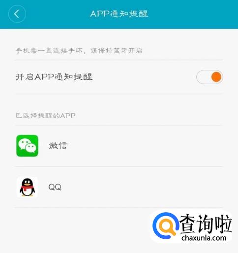 选择需要提醒的应用:微信、QQ,后面小圈圈点勾