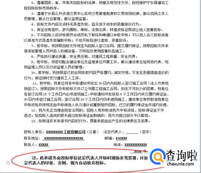 在投标文件格式格式里面中写了“注”的位置,要完全按要求完成;如果没按要求完成,则会视为自动放弃投标。