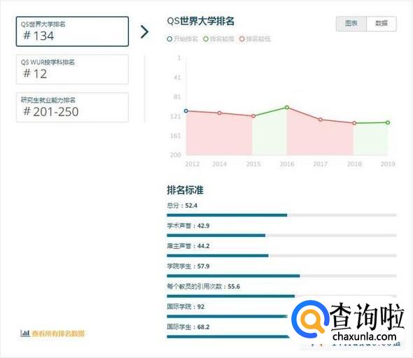 注:QS世界大学排名是世界公认最具影响力的全球性大学排名之一,主要评价指标为:学术领域的同行评价(40%)、全球雇主评价(10%)、单位教职的论文引用数(20%)、教师/学生比例(20%)、国际学生比例(5%)、国际教师比例(5%)