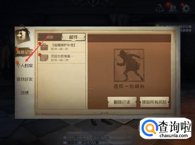 之后再点击下图页面中的【个人档案】按键。