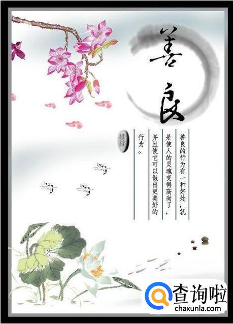 善良:善良是人性中最美的一部分,在这一生中我们要怀有一颗温柔善良的心,内心充满和平,对待其他人始终要以一颗最善良的心。
