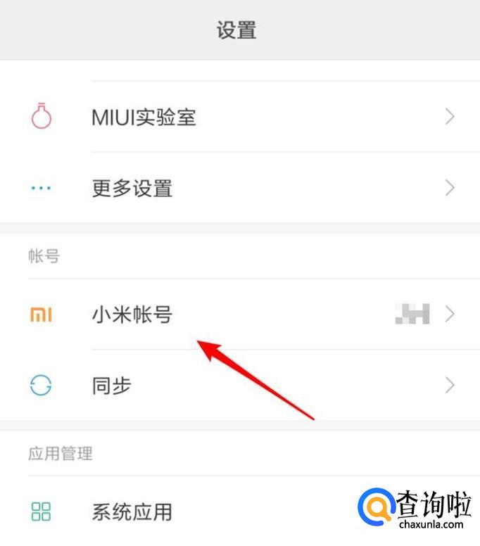 打开了设置页面,点击打开上面的‘小米账号’