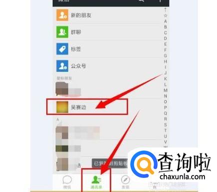 如果想给微信好友发红包,就点击通讯录中的那个好友的头像。