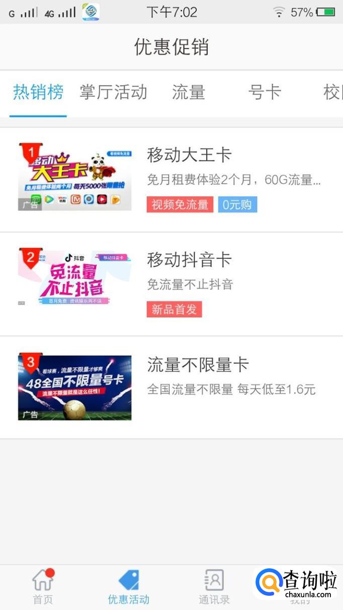 首先打开移动掌上营业厅,点击优惠活动,选择流量选项,找到爱分享。