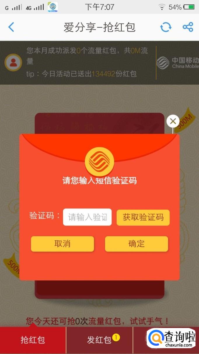 这是你只需要等待验证码,然后输入验证码,你的伙伴就会收到流量啦,一般是50兆,每天只能抢一次哦。