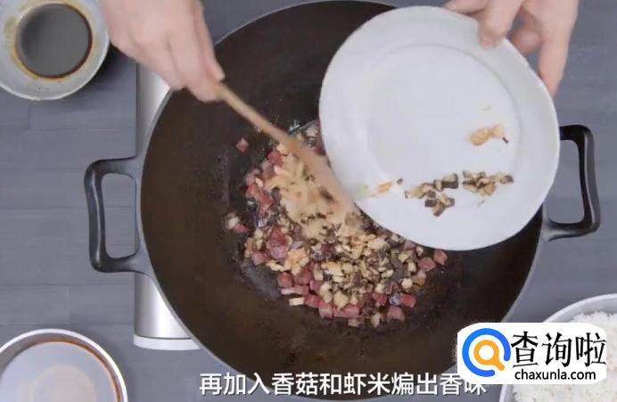 再加入香菇和虾米煸出香味。