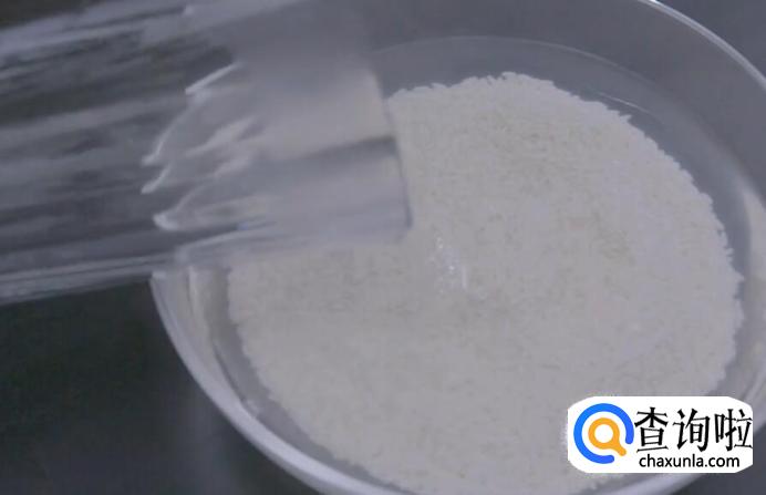 首先将长糯米用开水浸泡30分钟,期间不时搅拌以便受热均匀。