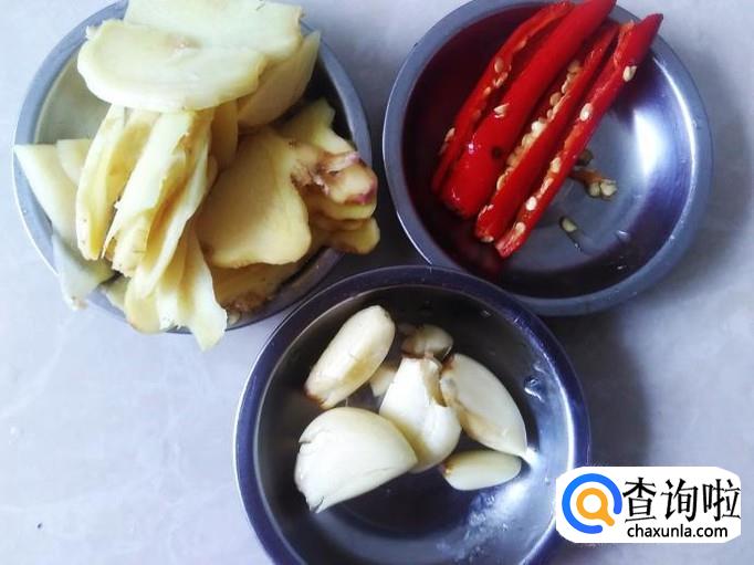 榄角、蒜米、嫩姜、小米辣准备好。