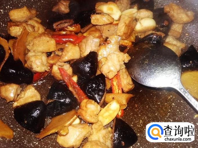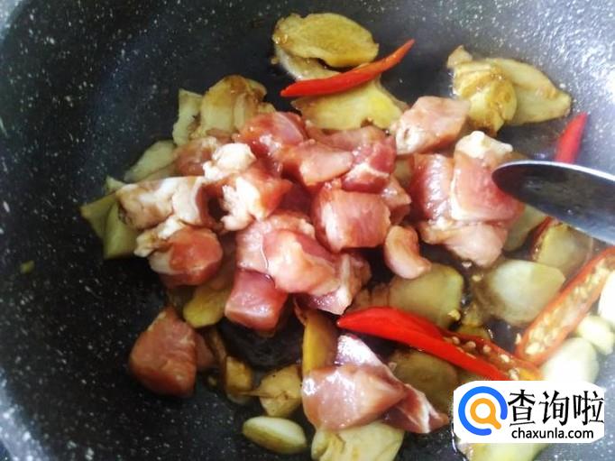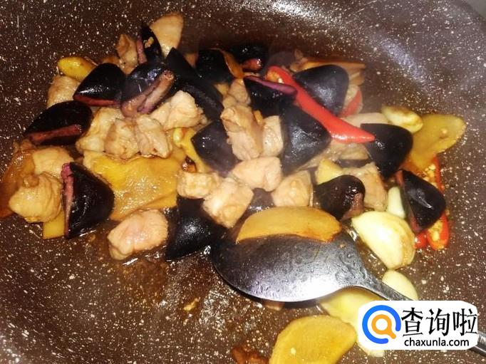 翻炒入味,再加肉丁进去。