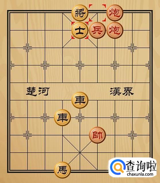 红方先走兵四进一将军(这里红方的兵跟红方的帅是在一条路线,而且兵的后跟着炮),这就形成了兵和炮双将军的棋局。