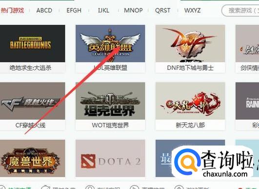 进入之后选择你要选的游戏,英雄联盟,然后点击进入。