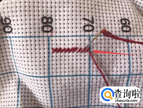 我们结束的时候不建议正面结束,因为会显得比其他地方突出很多,我们将线埋在背面,将针从布的布缝中穿过即可