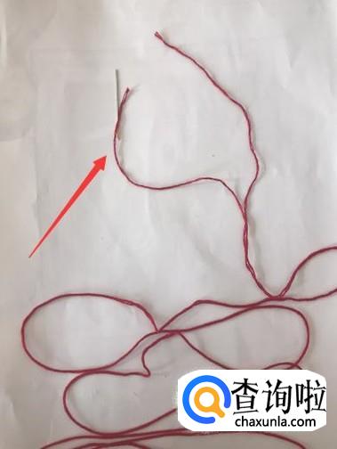 首先我们把一根线分为两股,将其中一股穿入针孔中