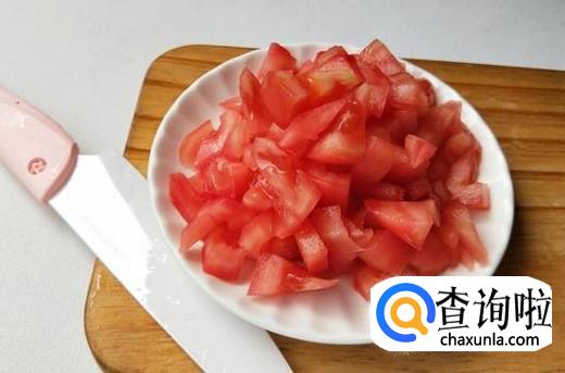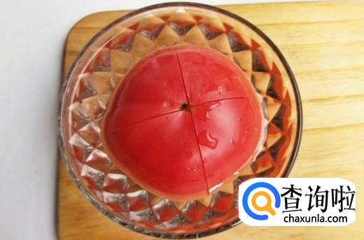 在番茄的顶部划一个十字刀,然后用开水浸泡十分钟,这样比较容易去皮。