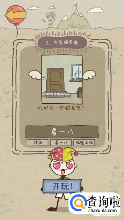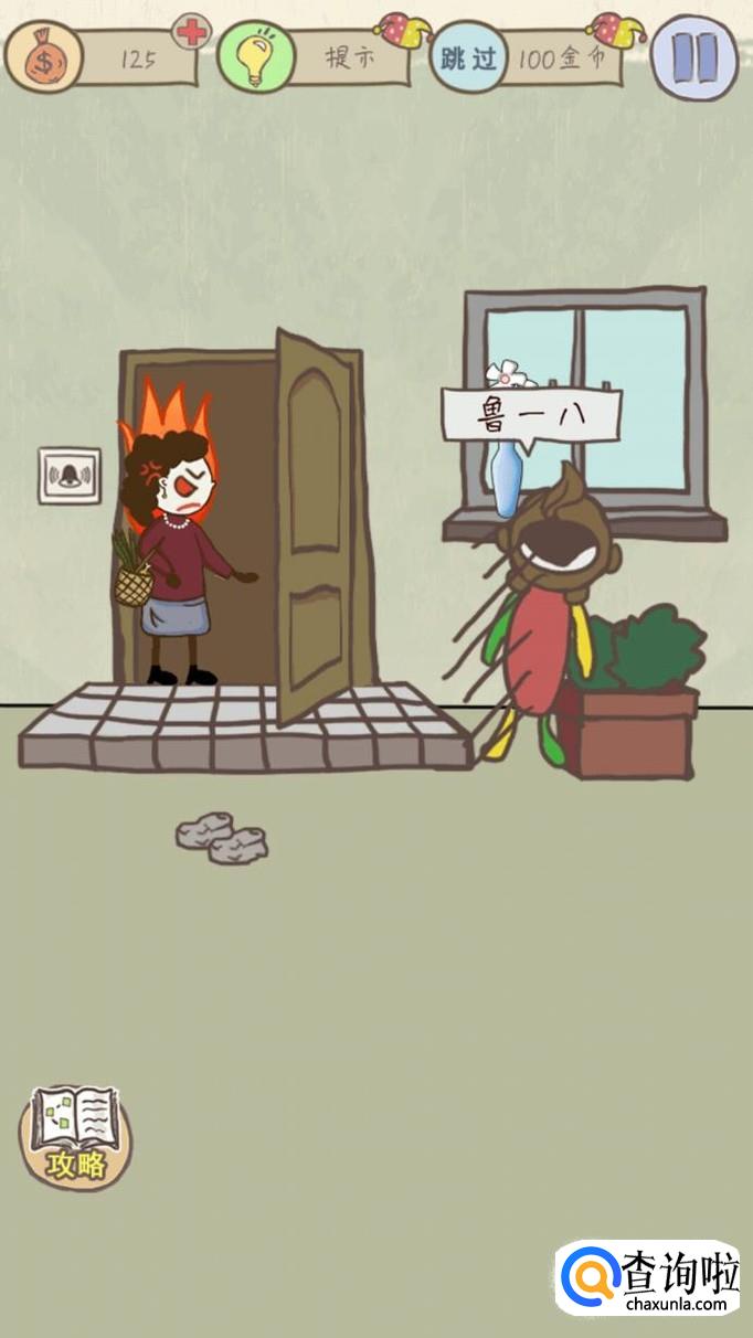 第三关的要求是邻家捣蛋鬼,直接捡起石头砸玻璃被打的人会是你,所以你要先按门铃,让鲁一八去窗子旁边,然后邻居出来以后看见鲁一八在窗子前面就会揍他这样你就通关了哦