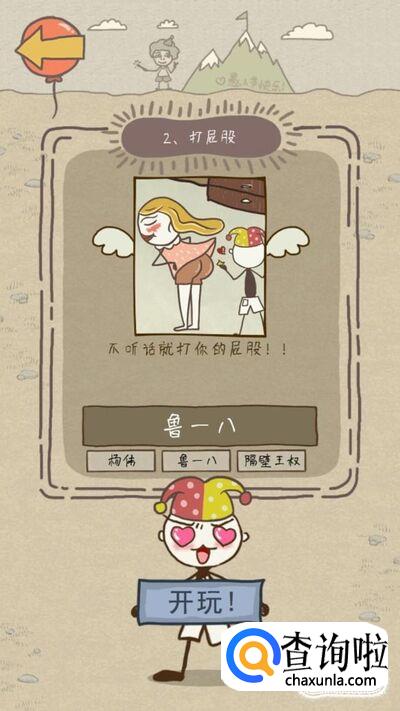 第二关要求是打屁股,直接打屁股鲁一八会放屁臭晕你,所以我们要找工具,打开衣柜,里面有一个鸡毛掸子,用鸡毛掸子去打鲁一八的屁股就能通关了哦