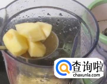 将苹果块放入搅拌机里,倒入少许凉开水或温水,个人觉得如果是给老人和小孩喝,还是倒温水比较好。