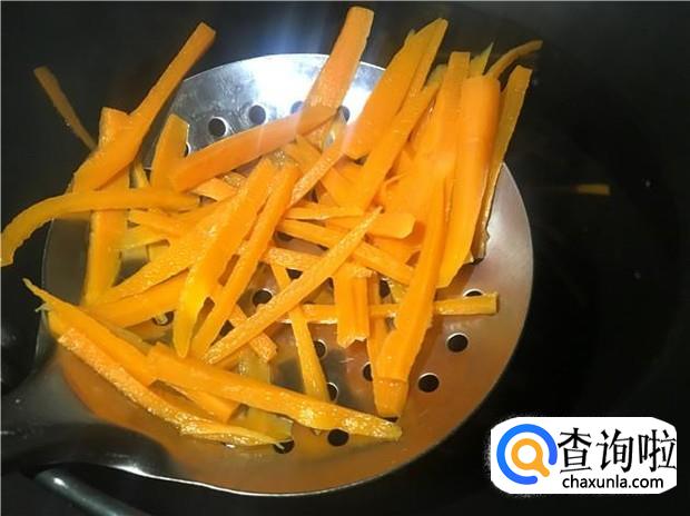 锅里烧开一锅水,放入红萝卜汤5分钟,红萝卜比较难熟;再放入海带丝汤3分钟。