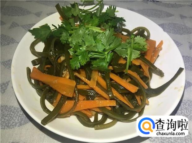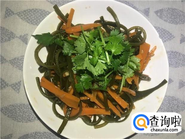 海带丝、红萝卜、蒜头、香菜、花生油、陈醋、蚝油、盐、白糖