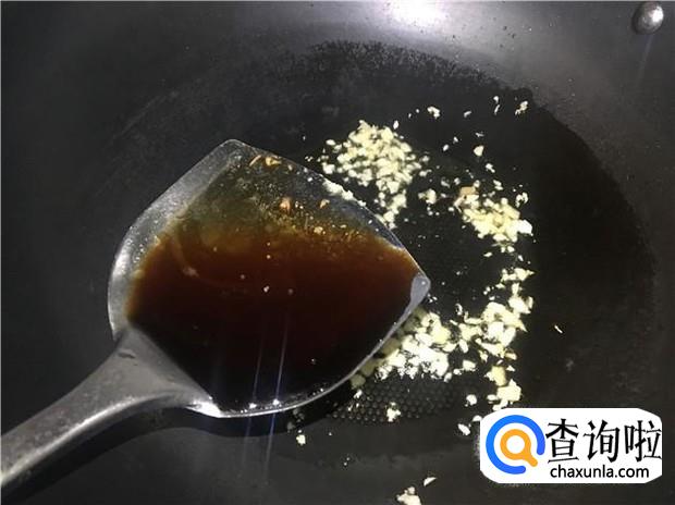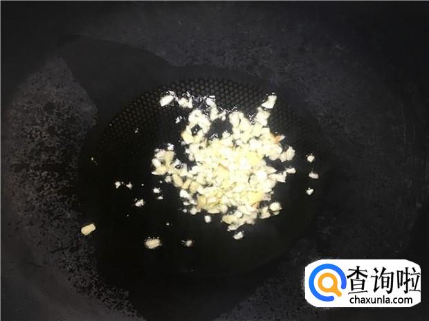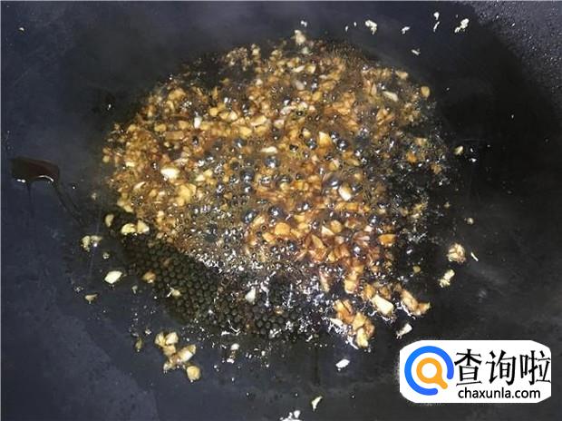 锅里下油,油热后,把火关了,再放入蒜蓉煸香。