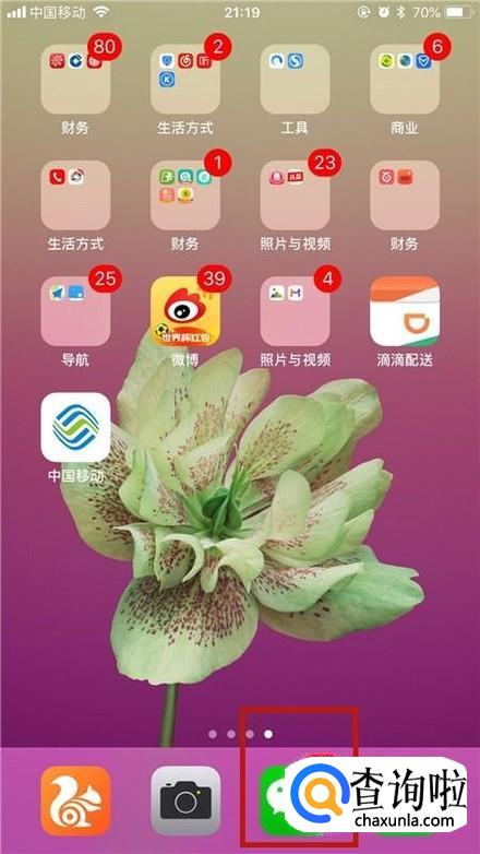首先在我们的手机桌面上找到微信并点击它,如下图所示。