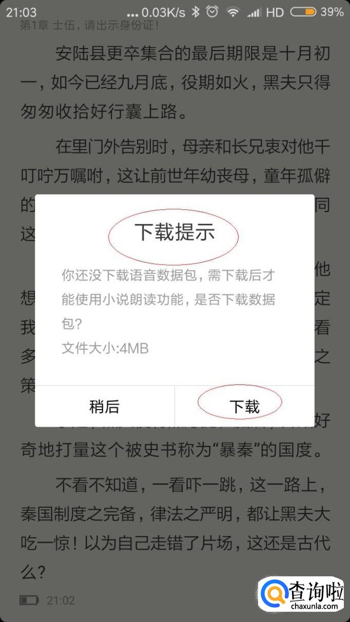 弹出"下载提示"对话框,如图所示。显示下载语音数据包方能使用朗读功能,点击"下载"图标。
