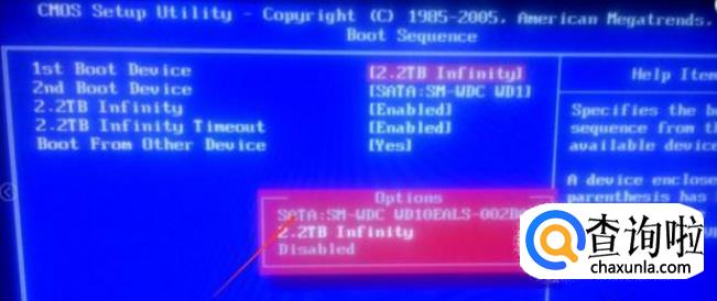进入启动设备选项后,选择箭头所指的选项,设置硬盘为第一启动项。