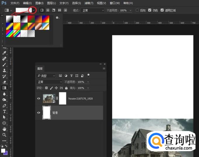 将渐变设为第一个也就是前景与背景颜色,通过鼠标单击即可!