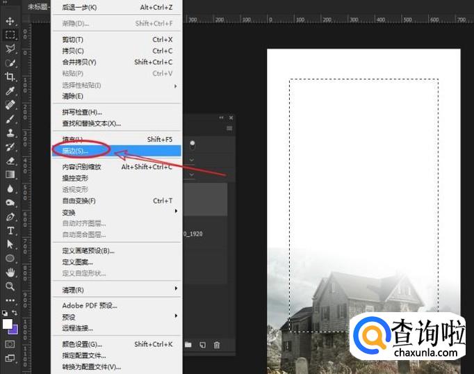 使用矩形工具绘制一个边框,通过描边命令为其描边。
