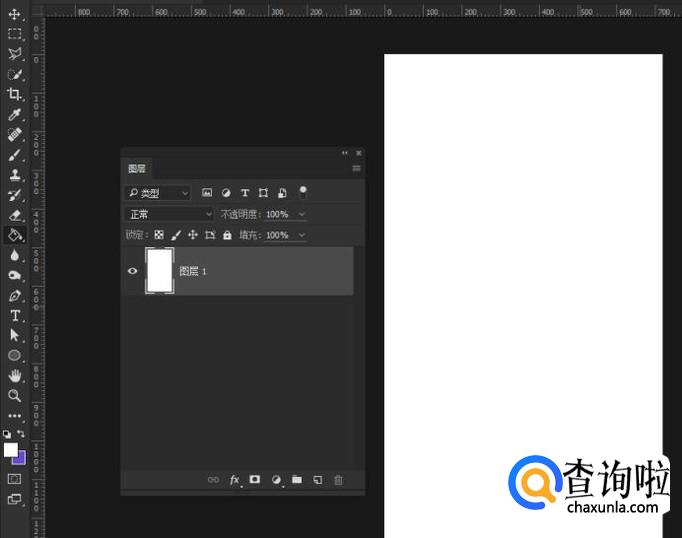 选择“图层 1”图层,通过油漆桶工具填充前景为纯白颜色。